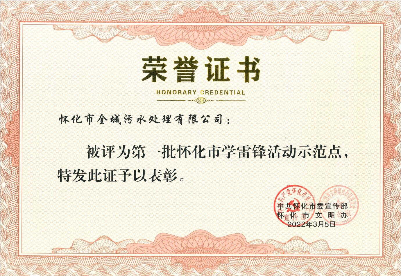 2022年3月被中共懷化市委宣傳部評為懷化市第一批“學(xué)雷鋒活動示范點”榮譽(yù)稱號